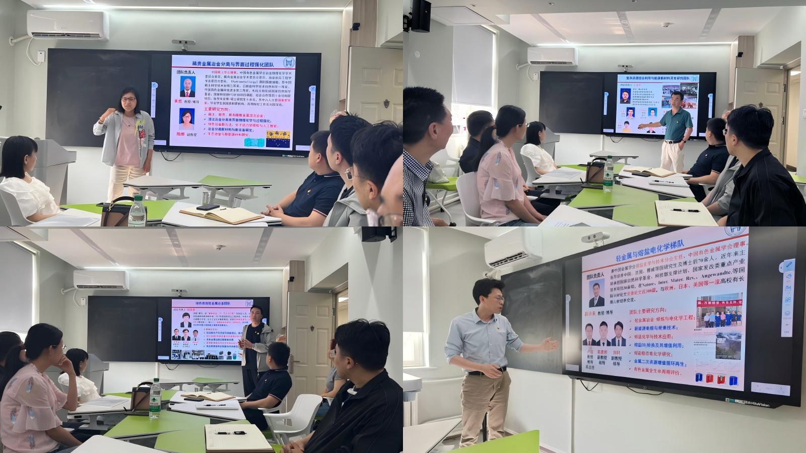 随后,双方进行交流讨论。科研工作方面,曹战民详细介绍了有色系党支部教学科研基本情况。陈永强、谢明壮、刘轩、隋娜作为有色系各梯队代表分享研究方向和特色。化学系党支部党员代表结合有色系研究方向,与各梯队老师进行深入交流,探讨了可能的交叉合作点。教学工作方面,曹战民建议利用人工智能技术将基础课与专业课的知识点有机串联,帮助学生构建系统化的知识体系,并简要介绍了冶金物理化学课程的内容框架。车平表示,化学系作为基础课程教学的重要执行者,应紧密结合冶金工程专业发展需求,优化教学方法,提升教学质量。