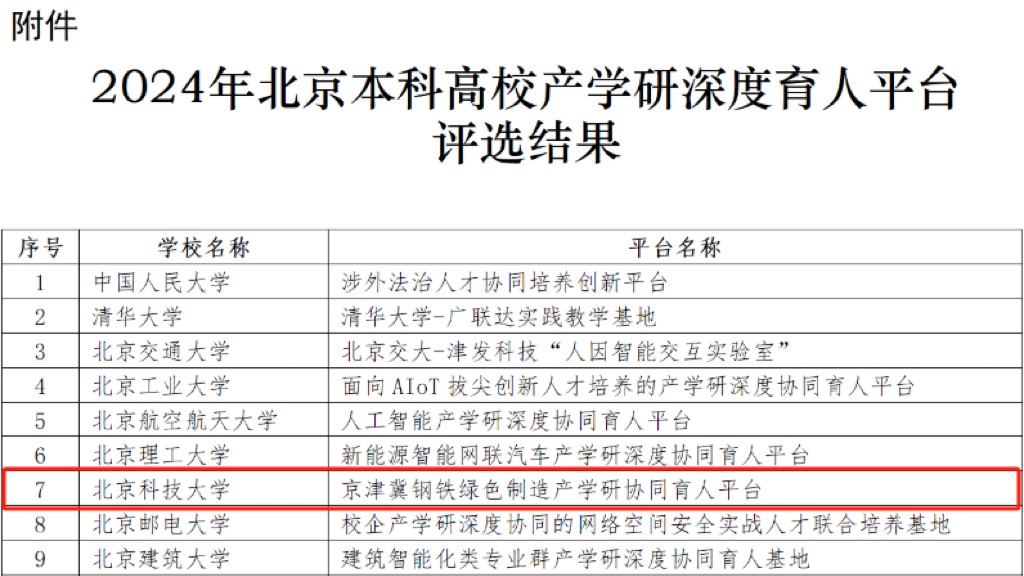 近日,北京市教育委员会下发了《关于公布2024年北京本科高校产学研深度协同育人平台评选结果的通知》,吃瓜网站 院长张建良和党委书记宗燕兵牵头申报的“京津冀钢铁绿色制造产学研协同育人平台”成为度协同育人平台+1!北科大唯一入选2024年北京本科高校产学研深度协同育人平台。