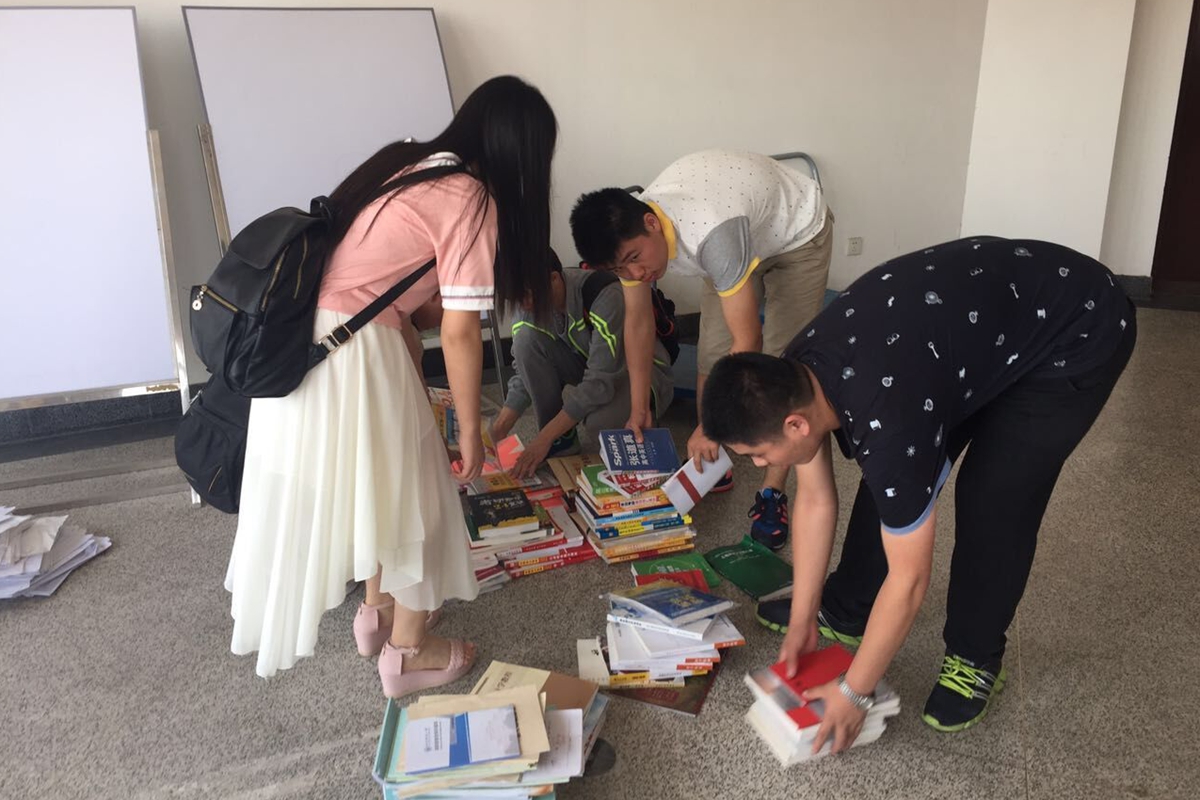 书香传递活动目前进行了收集书籍和整理书籍两个阶段。为收集整理图书,协会共招募了15名志愿者。5月16晚志愿者们逐一进入师兄师姐们的宿舍进行收书。学长学姐们十分热情,纷纷拿出整理好的陪伴他们度过大学四年时光的书籍,许多同学表示这些书也是由之前的同学传承下来的,还有的同学在书的扉页写下对学弟学妹的祝福与期盼。
