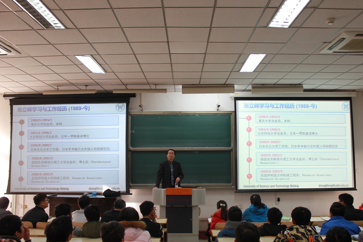 最后,张立峰院长为同学们介绍了中国钢铁的市场前景,并以国际视野分析了美国钢铁,欧洲钢铁,亚洲钢铁的形势,并明确指出我国冶金行业人才济济,科研条件不断提升是我国钢铁工业越来越强盛的根本原因,树立了同学们对于中国钢铁产业的信心和自豪感,为同学们的未来发展之路进一步明确了方向。