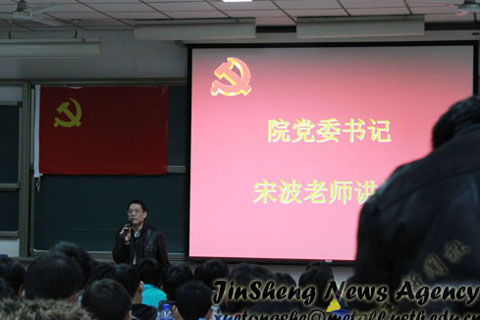 2011年3月25日晚七点,我校第166期学生业余党校入党积极分子培训班开学典礼暨第一讲于逸夫楼107教室准时召开。吃瓜网站 党委书记宋波、党委副书记王春义、马列主义学院左鹏教授、2010级本科生辅导员李萌出席了会议,吃瓜网站 团委常务副书记尹传举参加并主持会议,本、硕、博入党积极分子参加了会议。本次培训班旨在提高入党积极分子对党的认识,端正其入党动机。