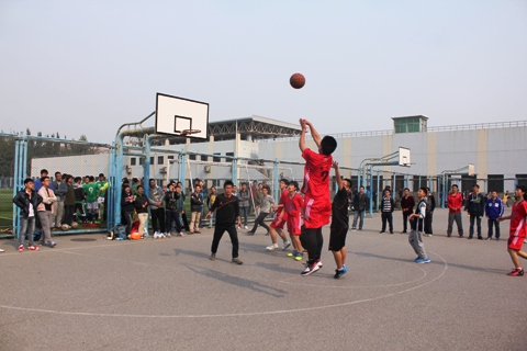 本科2014级新生篮球赛冠军争夺战终于在10月29日打响。参赛双方分别是身着火红色球服的冶金1403班和身着黑色球服的冶金1405班。双方队员在开场前各自做着准备活动,力求调整到最佳状态,迎接这场巅峰之战。