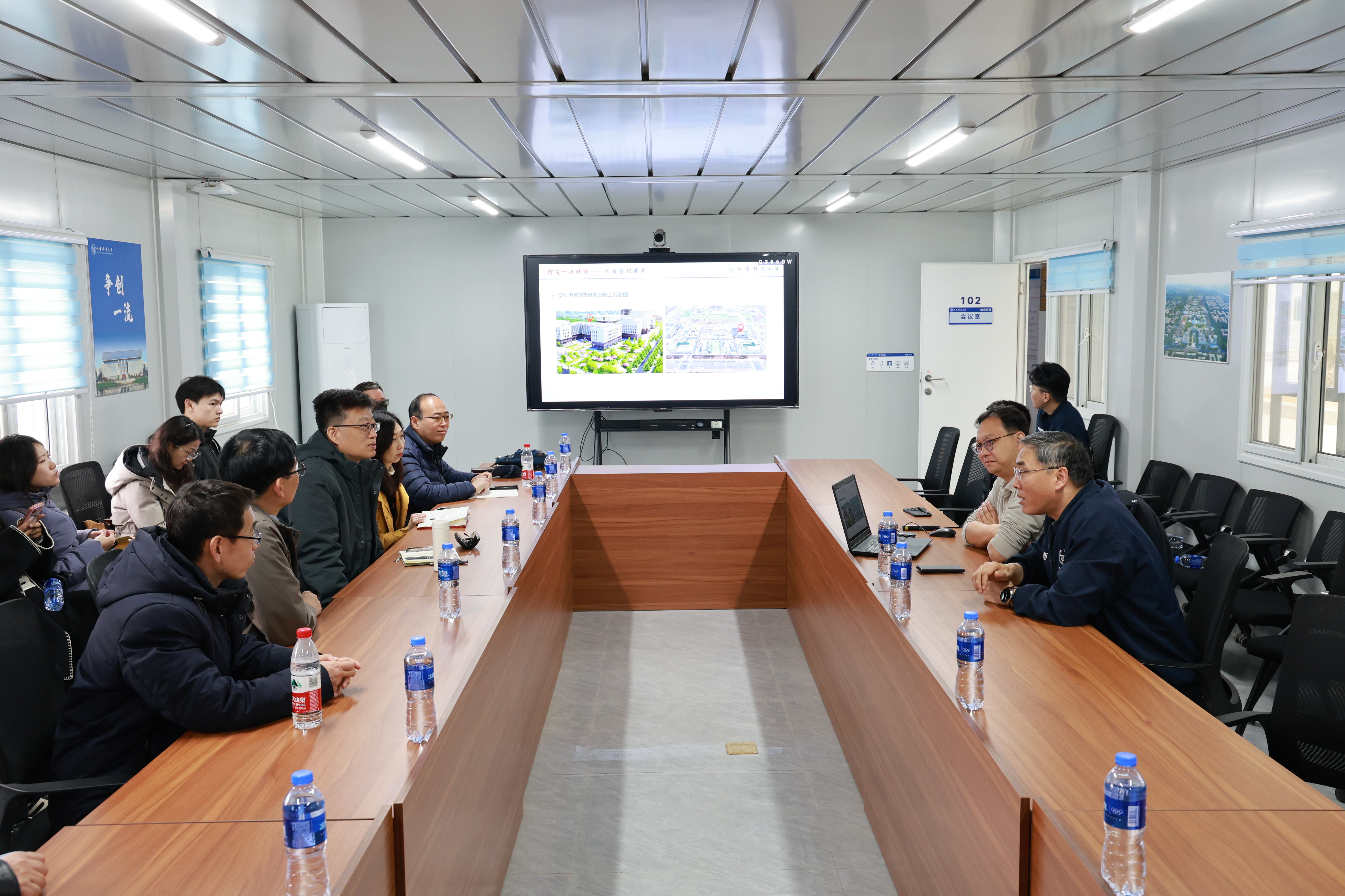 调研团队首先抵达雄安校区建设现场,实地察看施工进展、建筑结构及功能分区,深入了解新校区的整体规划与建设风貌。通过现场考察,调研队伍对新校区的空间布局、基础设施及未来发展前景有了更直观的认识。随后,前往雄安校区建设项目指挥部进行座谈交流。苏栋书记围绕新校区的建设进度、规划设计、配套设施等方面作了详细介绍,重点阐述了校区功能布局、绿色建筑理念及智慧校园建设等内容。双方还就吃瓜网站 未来入驻安排、新冶金楼功能需求与设计方案等具体事宜交换意见,进一步凝聚共识,明确后续工作方向。