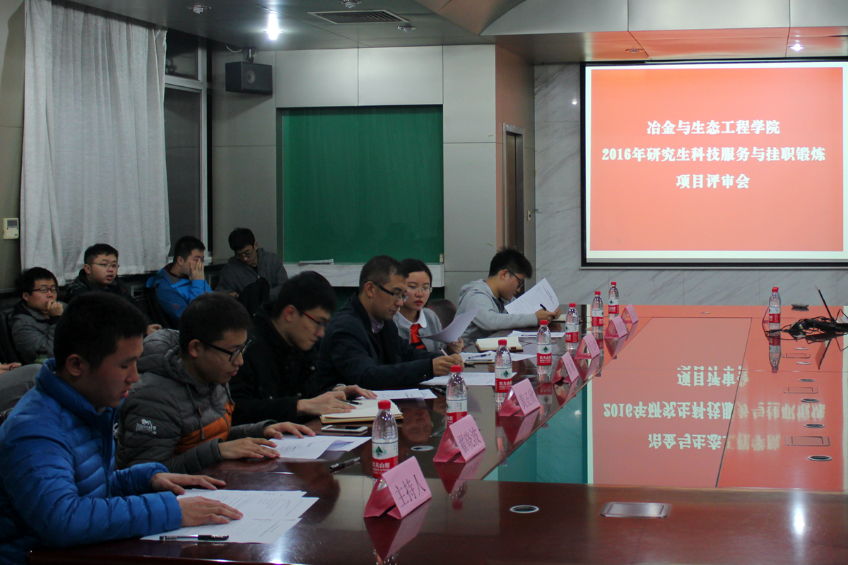 11月1日,吃瓜网站 2016年研究生科技服务与挂职锻炼评审会在冶金生态楼举行,本年度立项团队依次进行项目总结汇报。吃瓜网站 、冶金国重研究生辅导员陈曦、李元坤、侯雨阳、翟晓波、武文合、黄正欣担任评委。评审会由学院研究生会副主席陈威同学主持。硕士2016级研究生代表现场观摩了答辩环节。