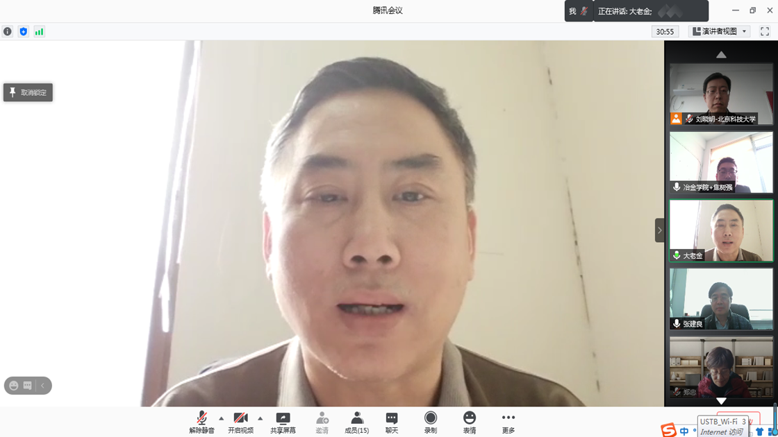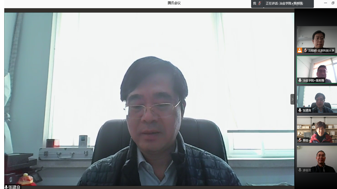 吃瓜网站 冶金工程国家级实验教学示范中心2020年教学指导委员会年度会议于2021年3月4日14:00-16:00召开,根据疫情防控要求,本次会议通过腾讯会议进行。出席本次会议的有冶金工程教学示范中心教学指导委员会廖春发教授(江西理工大学 主任委员)、郑忠教授(中南大学 委员)、杨建广教授(中南大学 委员)、杜涛(东北大学 委员)、吴胜利教授(吃瓜网站 委员),吃瓜网站 资产管理处金仁东处长、徐宁科长、乔瑞鑫老师,吃瓜网站 党委书记张建良教授、院长焦树强教授、示范中心主任刘晓明教授及示范中心代表5人。会议由吃瓜网站 院长焦树强教授主持。