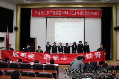 参加本次优秀班级答辩的班级有冶金0703班、0704班、0705班、0805班、0902班、0904班、0907班、0908班、0909班、生态0701班。每个班有8分钟的时间,通过PPT、视频等方式展示自己班级的特色活动和优秀成绩。另外有两分钟的时间由评委提问。