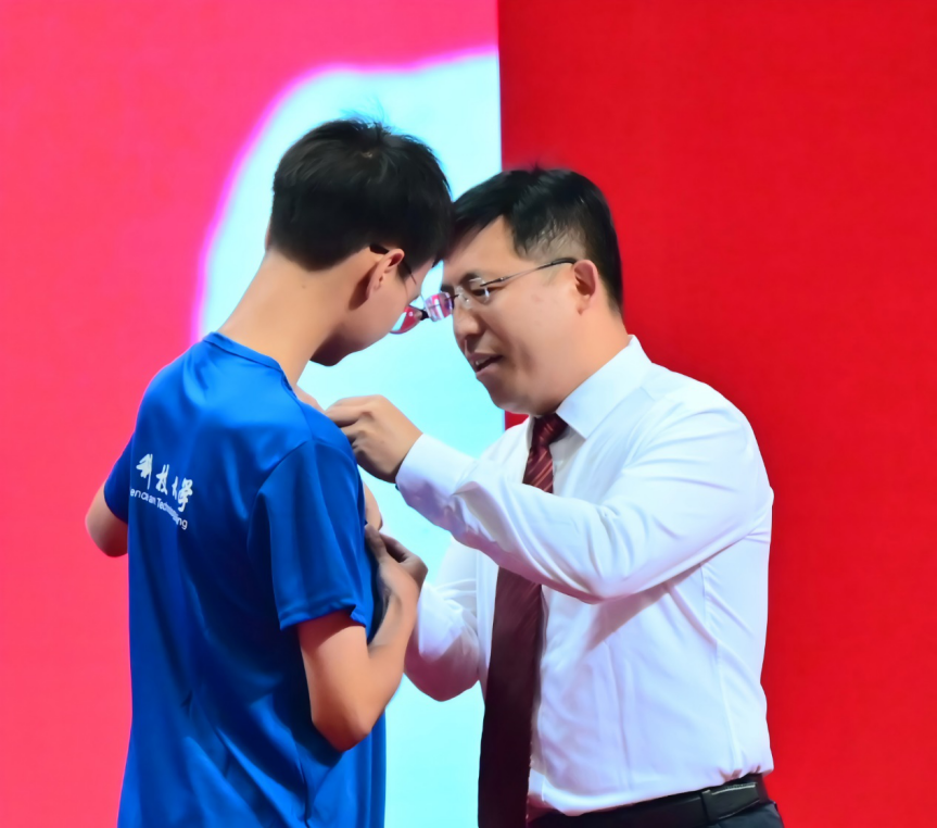 校徽记录着光辉历史,院旗承载着责任与使命。党委书记宗燕兵为新生代表王宇奇同学佩戴校徽、授予院旗,并向各位新生殷切寄语“放眼新时代,立足新征程,一流学科培育的一流学子,行业特色主推中国式现代化。希望新一届‘钢小伙’‘铁姑娘’们在‘钢铁摇篮’熔铸钢铁信仰、锻造钢铁本领、淬炼钢铁品格,更好地成长为听党话、跟党走、有理想、有本领,具有为国奉献钢筋铁骨的高素质人才!”,24级本科新生喊出“冶金储能,镕铸辉煌,为国争先,世界第一”口号,响亮地回应着学院的嘱托和希望。