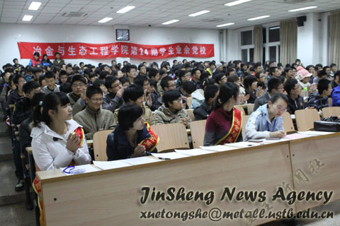 典礼结束后,党校第一次培训课开讲。本次培训课的主题为“党的十八大解读”。张北根教授从“把科学发展观当作党的指导思想”、“三个自信――道路自信、理论自信、制度自信”,“党建面临‘四大考验’、‘四大危险’”等方面深入分析解读了党的十八大精神,强调了党的十八大在党的建设和中国特色社会主义事业上的重要性,鼓励同学们学习贯彻党的十八大精神,为新中国的建设做出自己的贡献。