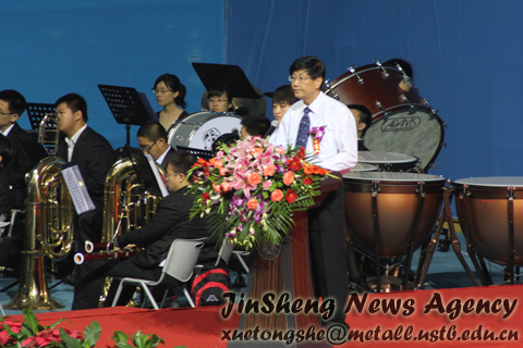 黄孝斌先生随后做了精彩的发言。他告诫入学新生抓住大学的学习机会,实现自身价值。徐金梧校长接着致辞。他首先代表学校对11级本科生的到来表示衷心的祝贺和热烈的欢迎,随后简要介绍了学校的基本情况。最后,徐校长提出了学校对学生未来的希望。