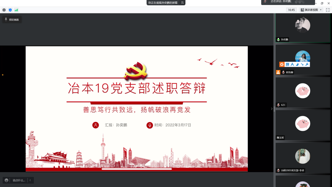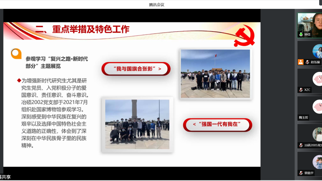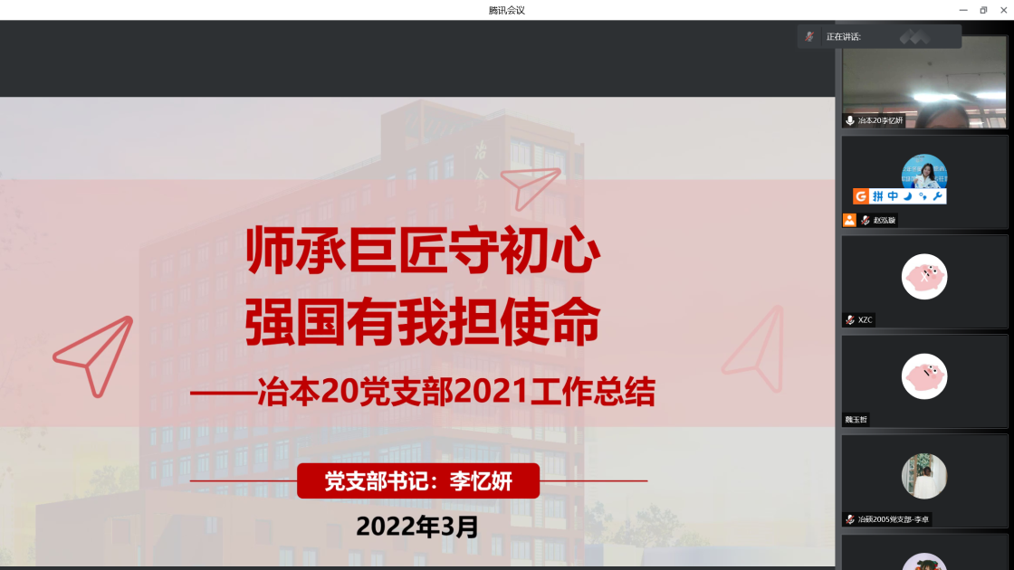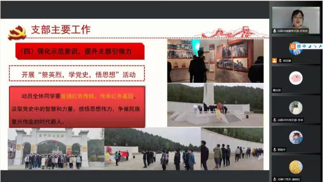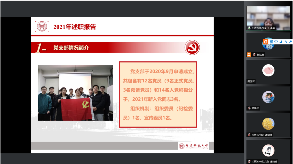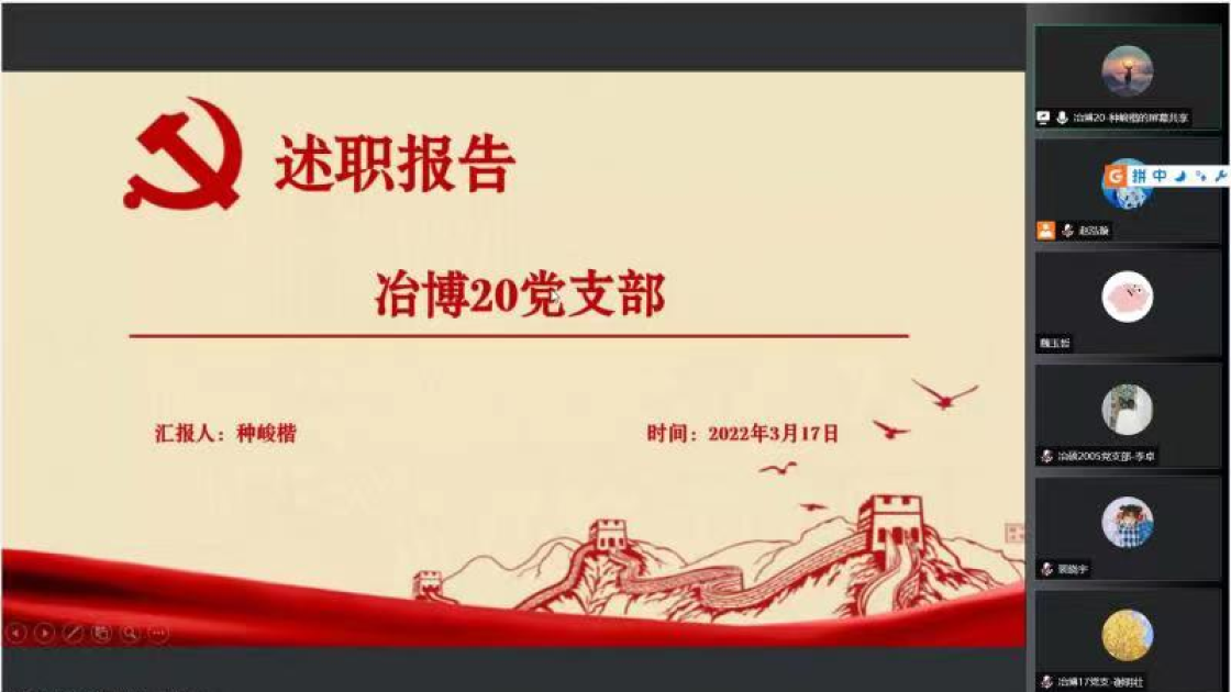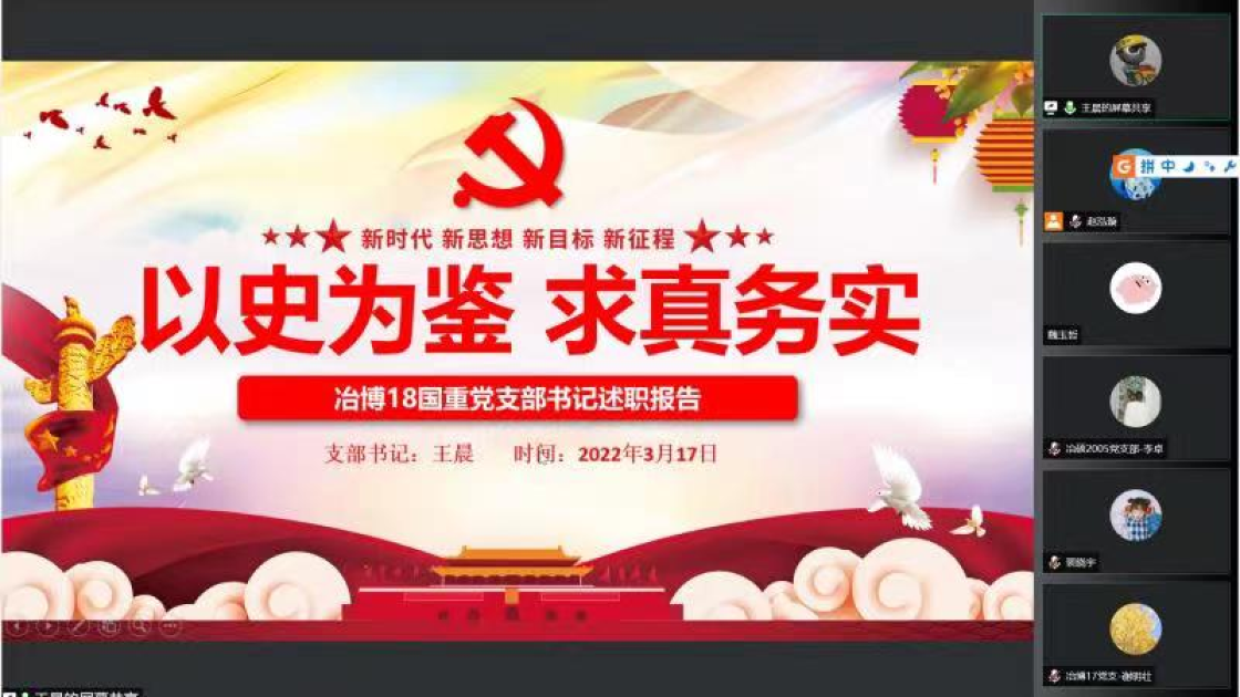 过去一年中,支部书记带动支部成员认真贯彻落实党的十九大和十九届六中全会精神,进一步深化拓展党史学习教育。会上,张建良对学生支部、支部书记在2021年的辛苦付出表示感谢,并进一步明确下一阶段的目标方向。接着,16名学生党支部书记先后就组织架构、制度建设、学风建设等方面对全年党支部工作做了总结汇报。2021年,吃瓜网站 党委各学生党支部紧密围绕贯彻落实习近平总书记“七一”重要讲话精神和关于加强高校党建工作的重要论述,坚持以党的政治建设为统领,以打造高质量的基层党建工作体系为重点,不断提升基层党建工作的质量。各位党支书在述职报告中展示了责任与担当,突出了工作亮点与支部特色,也深刻剖析了目前存在的问题与不足,提出整改计划,明确努力方向。
