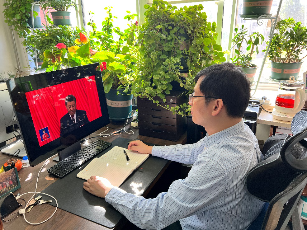 在这秋高气爽的日子里,能与师生共同观看党的二十大开幕会直播是非常珍贵的体验,此刻内心激动。近年来,冶金行政聚焦服务学院、服务师生、服务学科,为教学科研和人才培养提供坚实运行保障,助力形成了高质量党建与高质量发展并驾齐驱的生动局面,更加珍惜来之不易的良好局面。我们将更加紧密地团结在以习近平同志为核心的党中央周围,全面贯彻习近平新时代中国特色社会主义思想,把党的二十大精神和党中央各项决策部署落到实处,踔厉奋发,追梦不止,以实际行动喜庆党的二十大胜利召开。作为党政管理干部,要把二十大精神落实到统筹协调抓保障、全力以赴抓支撑、精准施策抓服务等各项工作中,依法行政、弘扬文化、展现形象,为助力“双一流”建设、培养“钢筋铁骨”高素质人才贡献自己的力量。