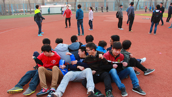 本科2014级利用早操时间开展素质拓展活动。素质拓展活动主要由“坐地起身”与“背夹球”两个项目组成。