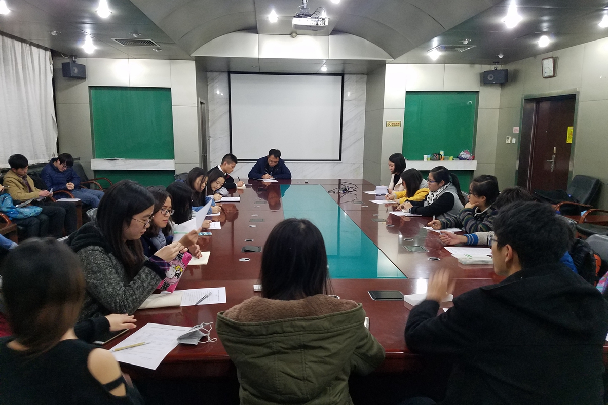 班级团支部书记联席会在冶金楼318顺利开展。学院团委书记杨志伟老师、团委书记助理李勇同学、团委副书记张月鑫同学与本科2014级、2015级、2016级各班团支部书记对各班主题团日的进展情况及团日活动中遇到的问题进行交流分享。