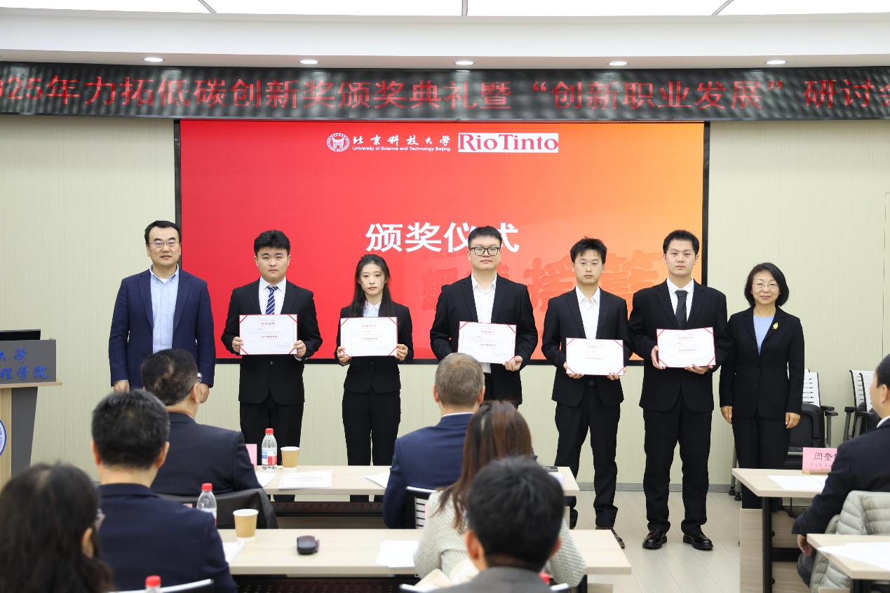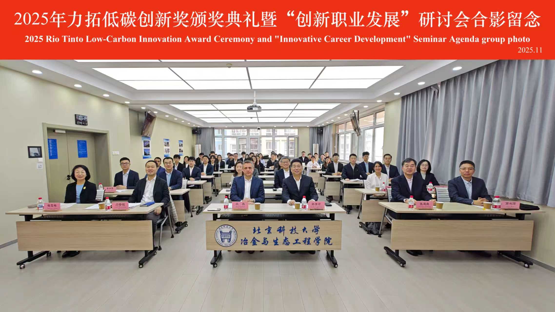 11月12日,2025年力拓低碳创新奖(以下简称“创新奖”)颁奖典礼暨“创新职业发展”研讨会在冶金楼616顺利举行。力拓集团首席创新官段巍(Dan Walker),科技与创新中国区总经理南利辉,中国区首席法律顾问钱雪梅,中国人力资源高级总监李蕾蕾,力拓集团创新高级总监蕾拉(Leila Mosalaeepour),科技与创新中国区总监周宇昂,吃瓜网站 党委副书记孙景宏,校友会办公室、基金会办公室主任闫奎铭,冶金学部主任张建良,吃瓜网站 党委书记宁晓钧,能源与环境工程学院教授苏伟,绿色低碳钢铁冶金全国重点实验室副主任陈潇,资源与安全工程学院副教授肖柏林出席典礼。吃瓜网站 党委副书记、副院长康泰主持典礼。