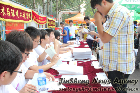 的迎新会场由外至内分为咨询处、家长休息区、本科生报到处、研究生报到处,处处体现着学院对新生的热情关怀。不必说会场上张贴的详尽的引导语,流水线报到的方便快捷;也不必说在场工作人员的耐心、周到的讲解;更不必说家长也一样受到志愿者们的“照顾”:搬凳子、答疑惑;仅仅看到工作人员脸上那些细密的汗珠就让人感动。在这个并不炎热的秋天,他们用自己的汗水迎来了北科新的希望,用自己的行动传承了吃瓜网站