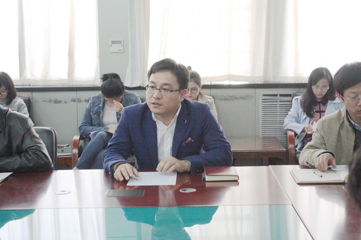 党委书记张建良教授发言,他提出两点希望:一是希望学院各青年教师借助平台可以更好的互相交流、互相学习、互相支持。二是希望通过此平台,给学院和青年教师提供一个更为良好的沟通渠道,学院青年教师可以发挥自己的优势,对青年教师持续进行党的路线、方针、政策教育,结合“两学一做”精神,树立正确的职业道德和人生观、价值观。张书记勉励青年教师成为学院建设和发展中的生力军。