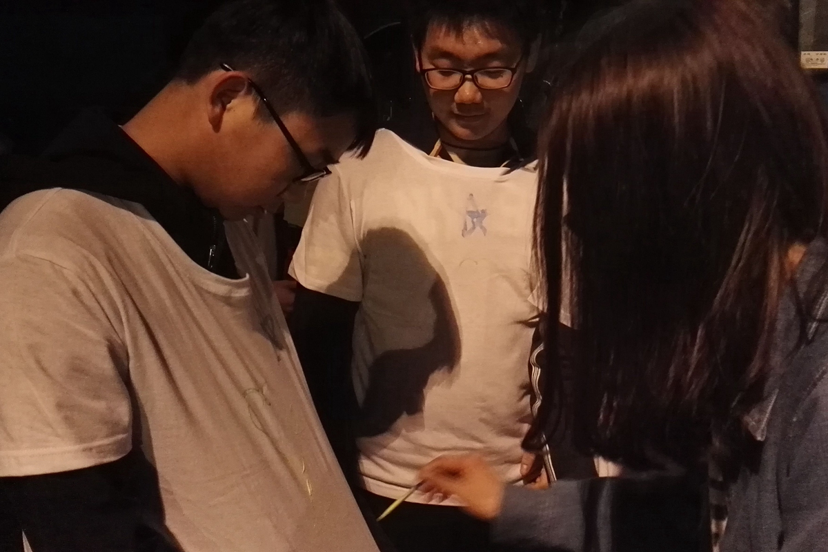 本次“荧光夜跑”以团校各个班级为单位,各位成员首先在校田径场集合、签到、分发白T-shirt、抽取夜跑路线。一切准备就绪后,裁判张月鑫和薛梦宇同学向学员们说明比赛规则以及注意事项。选手们按照规定路线到达相应站点后在规定时间内完成游戏即可获得一次涂抹相应颜色荧光粉的机会,最终根据所用时间的长短进行排名,记录于团校总成绩中。