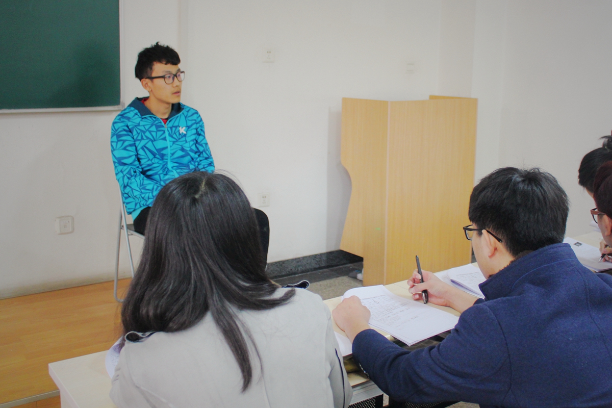 面试工作紧张而有序的进行,各个环节有条不紊的展开。面试分为2分钟自我陈述和2分钟自由问答。面试现场,本科2015级的同学们灵活应对,从容自信,对所提出的问题认真作答。从他们的言谈举止中流露出对学生会工作的真挚渴望及敢于挑战自我的信心,展现出了良好的素质和修养,体现了当代大学生敢于战胜自我的信心和勇气。在面试过程中,学院团学组织骨干均根据本部门的工作性质和要求向新生同学们提出问题,展开交流。