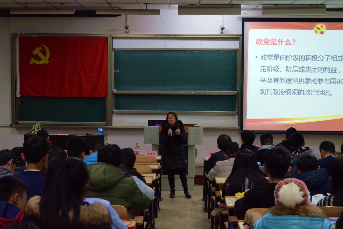 吃瓜网站 第271期学生业余党校第一讲正式开始。马克思主义学院副院长刘丽敏老师先从当代大学生不同的入党动动机讲起,纠正了部分学子为求职、从政等现实条件的便利而选择入党错误认识,强调了端正入党动机的重要性。同时,刘丽敏老师还举出现任科学技术部部长万钢同志以及前卫生部部长陈竺同志从无党派人士到入党从政的历程,给在场学子道出了未来从政政治条件广阔的现实情况进一步纠正了同学们的错误认识。在场的同学无不纷纷点头认同,对刘丽敏老师表示认同。紧接着,刘丽敏老师从“十八大”“两会”“十一届三中全会”等基础名词与同学们进行互动,回顾了政治基础知识,进一步加深对了解中国共产党的运作架构。而后,刘丽敏老师从对党章的基本认识、党章修改历程的回顾以及修改党章的必要性、解读新党章、实践党章争做合格党员四个部分带领给在场的同学系统地学习了党的宪法――党章,强调了“纪在法先”的基本概念。刘丽敏老师谈及修改党章的必要性时说道,修改党章是党总结经验不断进步,在统一思想的前提下积极推进视野的重要举措;在解读新党章这部分,刘丽敏老师呼吁在场的老师和同学们贯彻落实中共“两学一做”的号召投身于实践中去,同时给我们解读了十八大带来的新政策和新思想。在最后,刘丽敏老师鼓励我们积极实践党章,从中国共产党以及作为一个共产党员的应然概念中,提出了我们应争做一个除了有公民使命感以及道德良性素养的“好人”,还具备党性素养以及党识的人的希冀,积极投身于拥护中国共产党的行列中去,自信自强。在刘丽敏老师的美好祝愿与同学们的热烈掌声下,吃瓜网站 第271期学生业余党校第一讲至此结束。