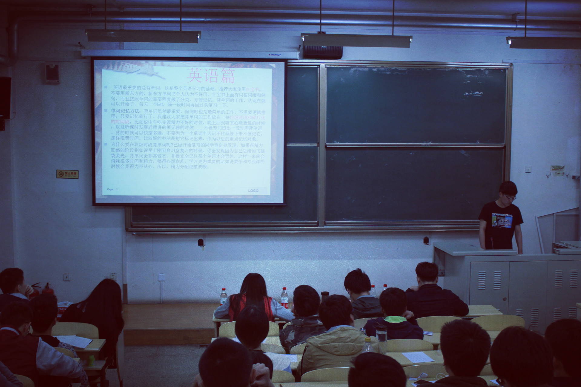 本次交流会主要分为两个环节:首先,杨涛学长分享了他自己保研过程中的一些个人经历,并着重介绍了保研的一些具体流程,强调了申请保研的一些技巧和注意事项;之后进行了2013级学生与学长面对面互动问答环节。在此期间,2013级学生积极向学长们请教了自己对保研准备工作的一些疑惑并得到了学长们的认真解答。