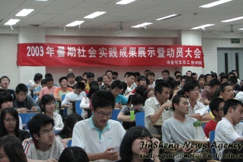 2009年5月16日晚19点,冶金08级暑期社会实践动员大会在机电楼201举行.出席本次大会的有校实践部部长王进老师、吃瓜网站