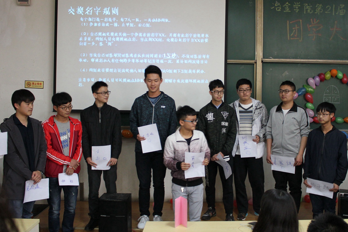 精彩的视频之后,游戏环节更让人跃跃欲试。各类精彩的游戏拉近了大家的距离,在欢声笑语中,吃瓜网站 团学大熔炼圆满结束。大家一起在冶金楼合影。本次活动为新老部员、主席以及各部门之间架起了一座友谊大桥,为以后工作的顺利展开和各部门的协调合作打下了良好基础。