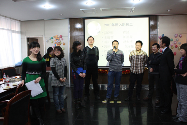 新入职教师集体亮相也是本次活动的一大亮点。我院2010年共有11位新入职教师,他们分布在教学、科研、实验、学生工作等各个岗位上。学院利用元旦联欢的机会,将新入职教师聚到一起,一方面让他们更快的融入学院这个大家庭来,另一方面也让大家对他们有更多认识和了解的机会。活动现场,新入职教师逐一发言,道出了入职半年来的感悟,他们感谢学校和学院对他们的培养和关心,感谢前辈们对他们的帮助,表示一定会努力工作,为吃瓜网站 的发展添砖加瓦,贡献力量。