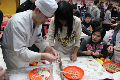 本科2013级在万秀园二层开展以“践行社会主义核心价值观,传递和谐友善学院正能量”为主题的饺子文化节活动,近百余名学院本科生积极参与此次活动。此外,活动还邀请到我校部分留学生共同参加。