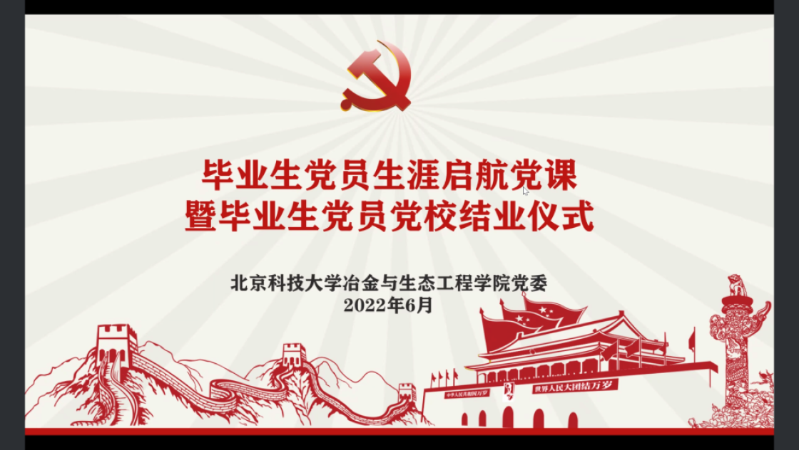 会议最后,在毕业生党员代表傅泓源带领下,全体党员举起右拳,重温入党誓词。作为毕业季系列活动之一,毕业生党员党校为学院党委与毕业生提供了深入交流的平台,为毕业生们上好在校期间最后一堂成长对话课、专业教育课、思想政治课,让即将走出北科的冶金学子感受到母校的温暖关怀和殷切期望,引导毕业生党员在爱校荣校中坚定理想信念,肩负时代使命。