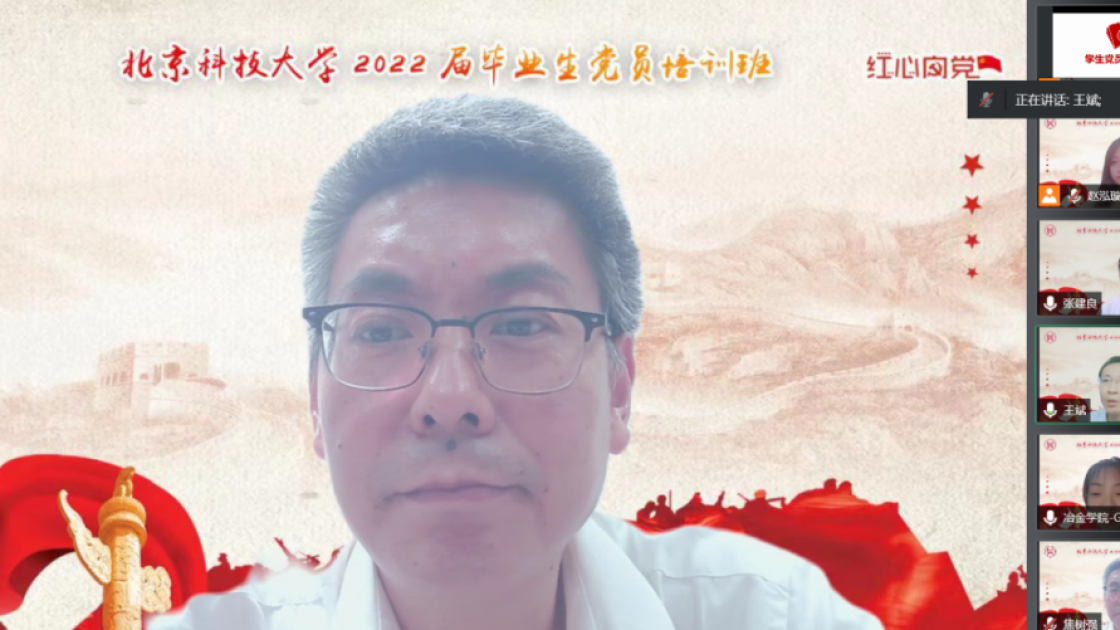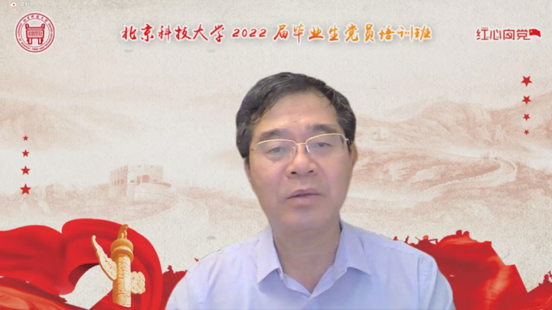 张建良以“不忘百年路,启航新征程”为主题进行党课讲授。他指出,疫情防控关键之时,年轻一代党员同志冲锋在前,让红色的党旗在疫情防控工作的志愿蓝中高高飘扬,充分彰显了新时代青年不遗余力在担当中作为,在磨砺中成长。他从习近平总书记给吃瓜网站 15位老教授们的回信精神出发,对毕业生党员提出三点希望,一是要坚定信念,志存高远,党员同志们要始终坚守初心,为民族复兴、国家富强无私奉献、无畏向前;二是要明德修身,勇担责任,毕业生党员们要以钢铁报国为己任,努力成为铸就科技强国、制造强国的钢铁脊梁;三是要奋勇争先,勤于实践,站在人生的新起点,冶金学子们带着北科赋予的印记,心怀憧憬,满怀感激,练就过硬本领,在祖国的大江南北建功立业,光荣的喊出“请党放心,强国有我”的铮铮誓言。
